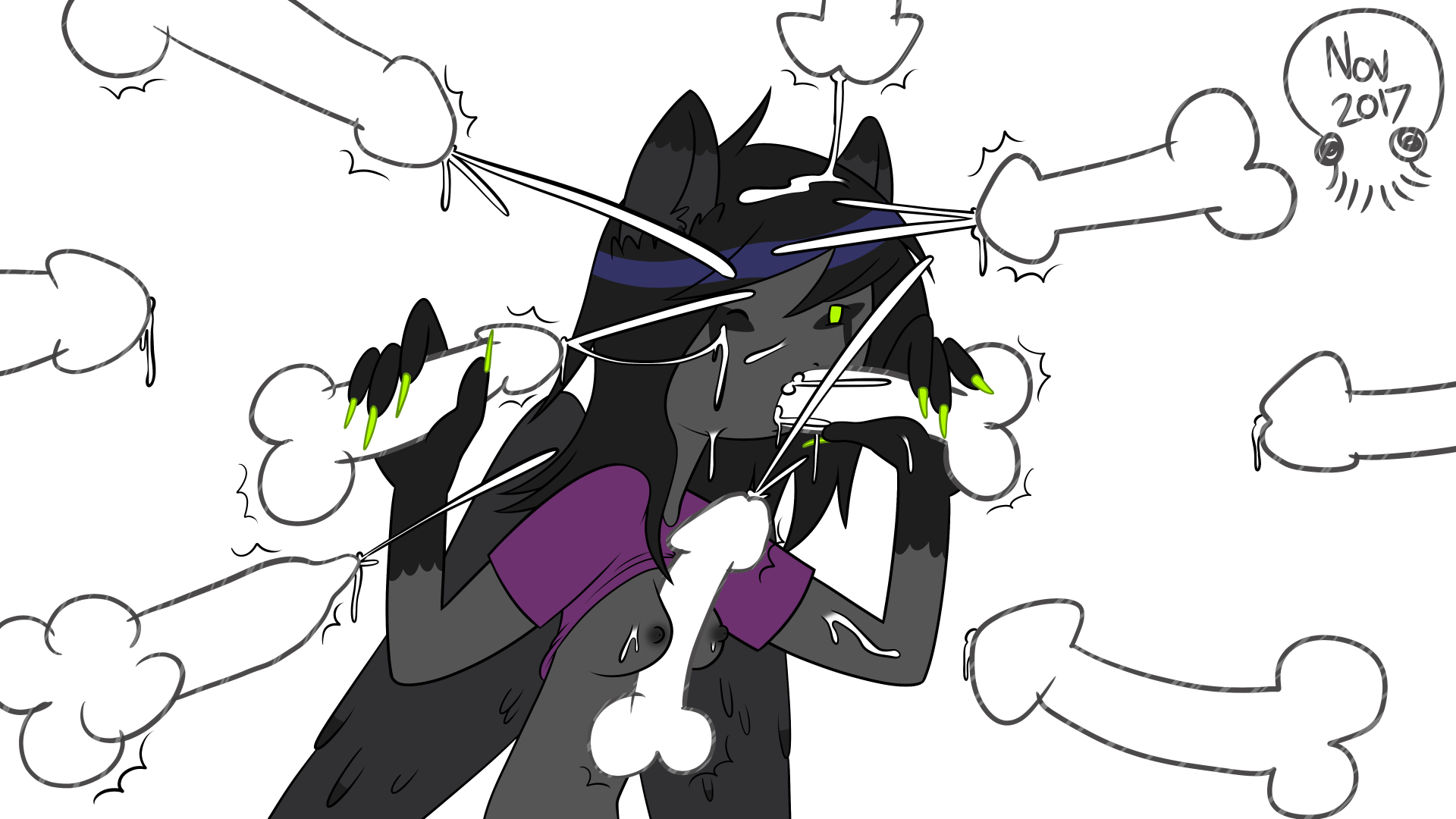 - 2017, bukkake, clothed sex, cum in mouth, cum on body, cum on face, double handjob, drawn, f, fanart, fellatio, mmmmmplusm, oc, paizuri, straight, tagme, triple handjob