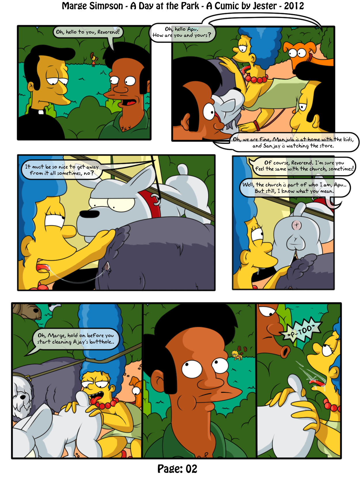 - 2012, a day at the park, anilingus, anilingus on beast, apu nahasapeemapetilon, bestiality, cheating, comic, degrading, dog, drawn, f, group, marge simpson, milf, mm, public, reverend lovejoy, spit in mouth, straight, taking turns, the simpsons